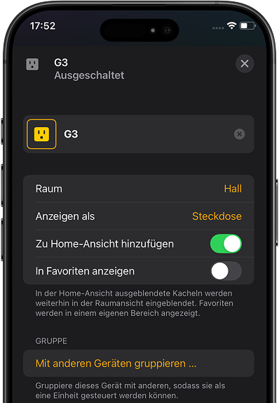 Schritt 3: Finde die Szene im Dritt-Ökosystem – sie wird als neues „Steckdose“-Gerät angezeigt.