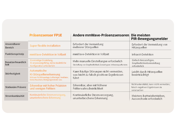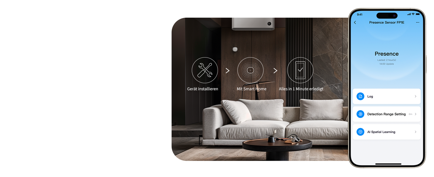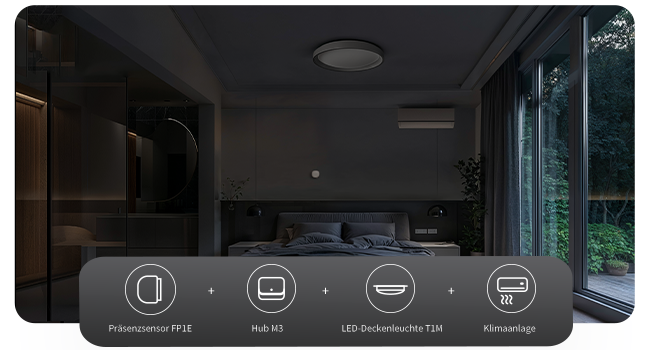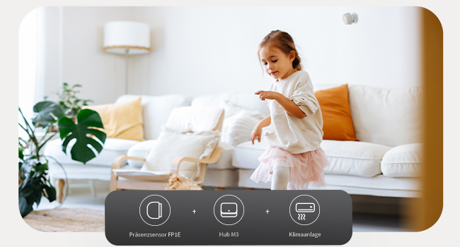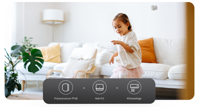 Der Präsenzsensor FP1E erkennt präzise, ob sich eine Person in einem Raum bewegt oder stillsteht, sowie die Dauer des Zustands und eröffnet damit eine Vielzahl von Automatisierungsmöglichkeiten, die durch Bewegung/Stillstand ausgelöst werden.