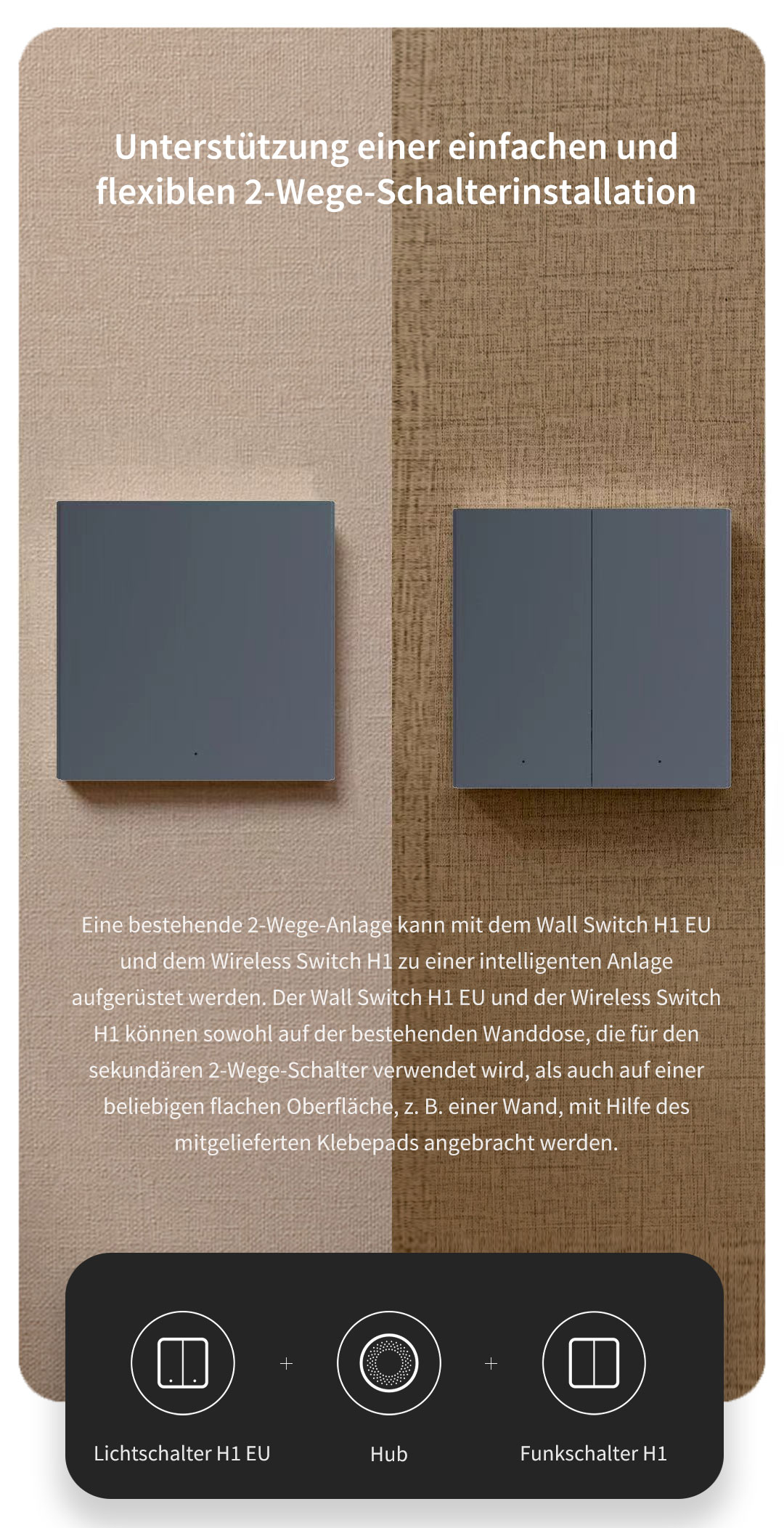 Smarter Lichtschalter H1 EU (ohne Neutralleiter) - Grau
