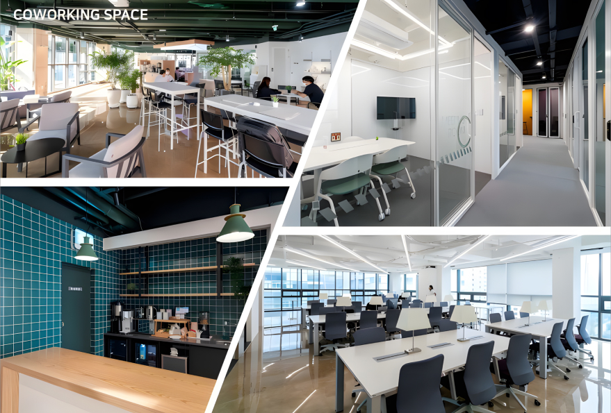 The MY WORKSPACE branch at Jiangnan Station on Teheran-Ro offers spacious and comfortable shared lounges, fully-equipped meeting rooms that can accommodate 6 to 8 people, private phone booths for focused calls, and booth seating for casual conversations or team collaboration. The facilities cover a total area of 3300 square meters and is equipped with over 1000 smart devices.