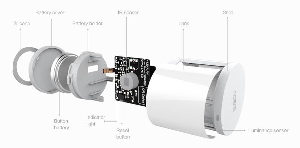 A Japanese infrared sensor is used to detect human motion through the moving heat source and the US Polyolefin Fresnel lens is used for high precision detection. The shell is made of anti-UV material and the colour will not fade allowing for long-term usage. The high quality flame-retardant material is used to improve safety.