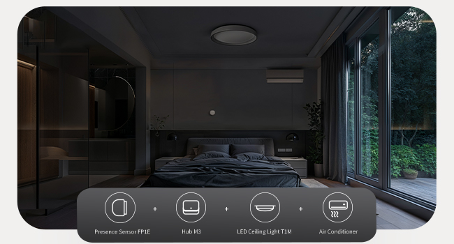 IF absence detected, THEN turn off the light and air conditioner in the bedroom With this automation scene, users can say goodbye to wasted energy caused by forgetting to turn off power when leaving a room.