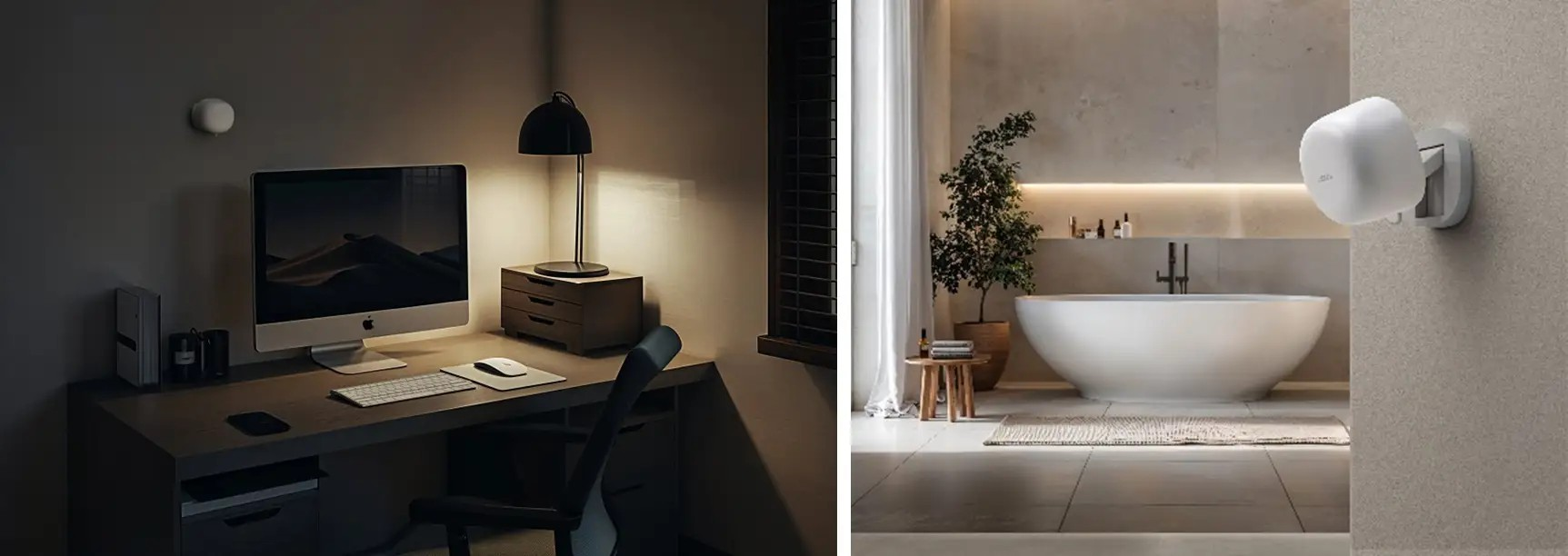 ⼈感センサーFP1Eは、ミリ波レーダーと⾼度なAIアルゴリズムを同時に搭載した使いやすさに重きを置く新製品です。⼀度設置してハブに接続すれば、感度設定や⼲渉源排除などの追加設定が不要で、⾼精度な⼈間検出と多様化したスマートホーム⾃動化を実現できます。