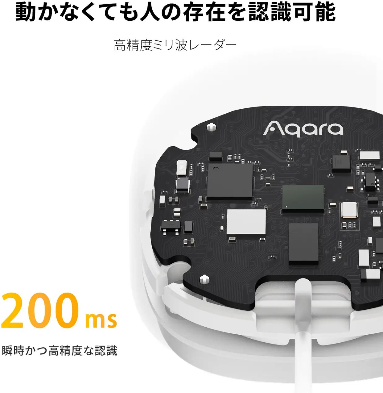 これまでの⼀般の⾚外線⼈感センサーには「動かないときに⼈の存在検知できない」という最⼤の課題がありました。このような課題を解決すべく、Aqaraの⼈感センサーFP2ではミリ波レーダーを搭載。⼈感センサーとして検知精度を⼤幅に向上しました。⼀⽅で取り付けや設定が難しく⼀般の消費者にとって利⽤のハードルが⾼いという課題がありました。