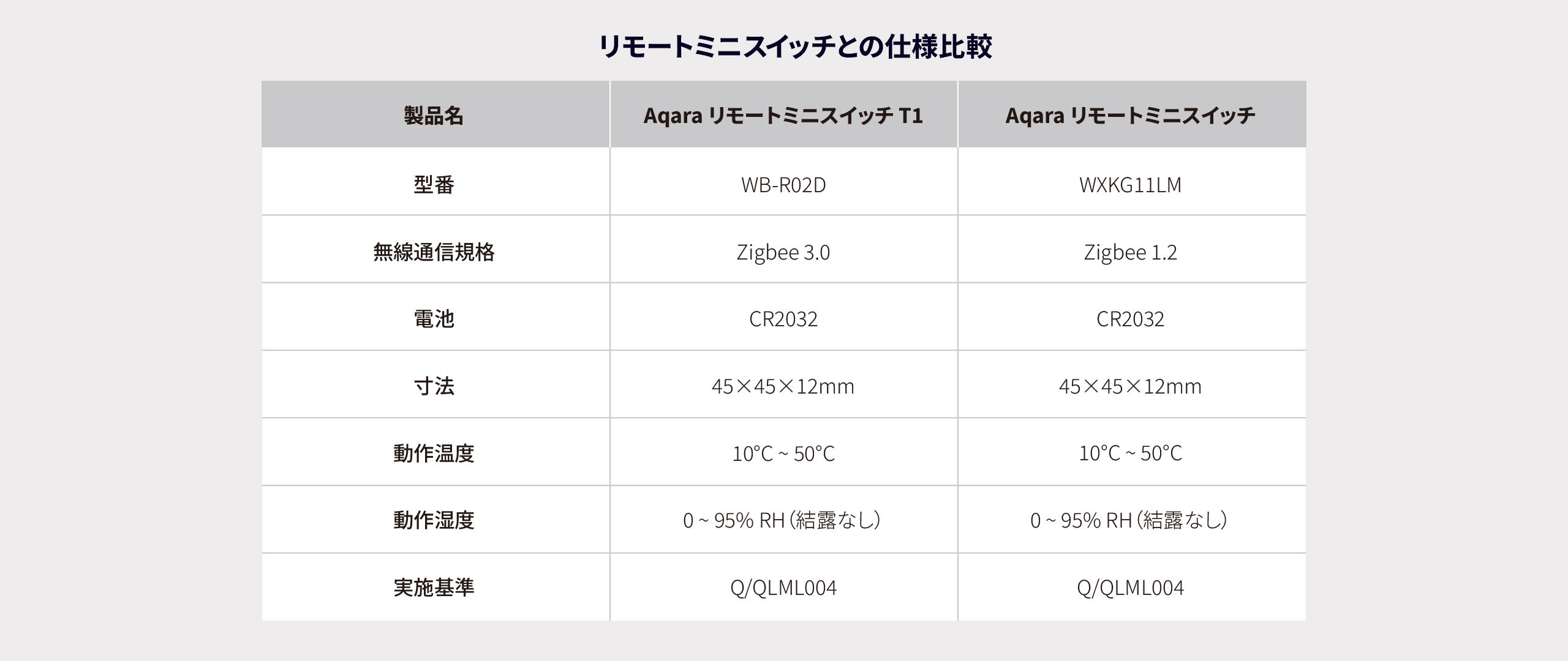 AqaraリモートミニスイッチT1は、コンパクトなデザインで低消費電力を特徴とし、最大50,000回の押し当て* をサポートします。V-0 グレードの難燃性 PC パネルを採用し、高温耐性を実現します。
